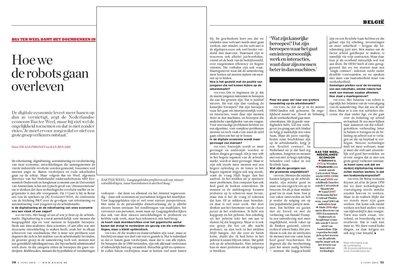 - Knack, "Hoe we de robots gaan overleven", 06/06/2018, Ewald pironet et Han Renard, pp.70-71